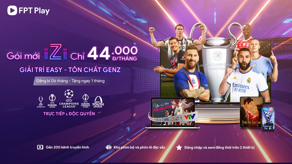 200 kênh truyền hình , độc quyền bóng đá cúp C1,C2 , Xem đồng thời trên 2 Tivi Smart khi có APP FPT PLAY